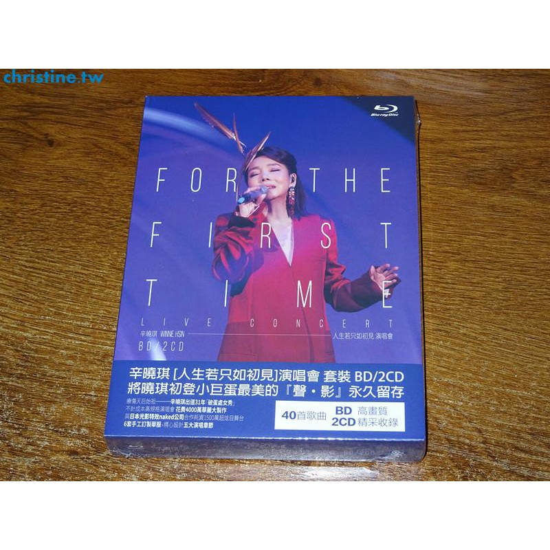 Source: img.ruten.com.tw 伍佰 & china blue / 透南風演唱會影音全紀錄 2dvd+2cd+【濃烈情感故事書】 8. 【專輯簡介】 辛曉琪 2018 人生若只如初見演唱會 台北小巨蛋 療傷天后始祖─辛曉琪出道31年「破蛋處女秀」 不計成本高規格演唱會 花費4000萬華麗大製作 與日本光影特效naked公司合作耗資1500萬超炫目舞台 6套手工訂製華服,精心設計五大演唱章節 40首歌曲 bd高畫質精采收錄 {命運的初章}{情感的初. 擁有經典無數、唱遍全球的辛曉琪,這一次回到最熟悉的地方; 帶著這麼多我們熟悉的歌,重新沐浴時光中愛的故事每一篇章。 辛曉琪「人生若只如初見」live 2cd 帶你重溫和曉琪在台北小巨蛋初見的那一晚, 獻給最認真的曉琪與陪伴在曉琪身旁最美好的你們! 辛曉琪 winnie hsin / 人生若只如初見演唱會 for the first time live concert (2dvd) 6. 辛曉琪 winnie hsin / 人生若只如初見演唱會 for the first time live concert (bd) 7.